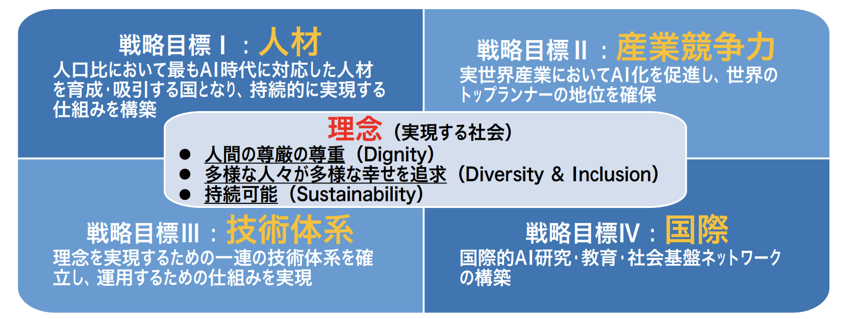 - 戦略目標Ⅳ:国際的AI研究・教育・社会基盤ネットワークの構築