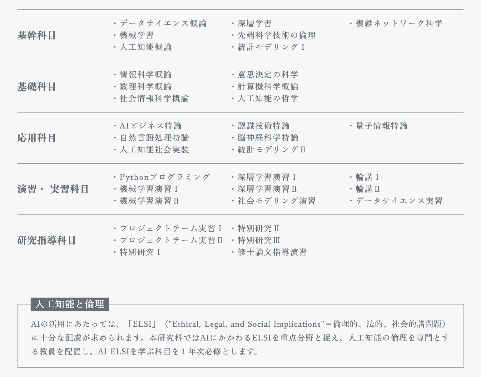 人工知能科学研究科 カリキュラム