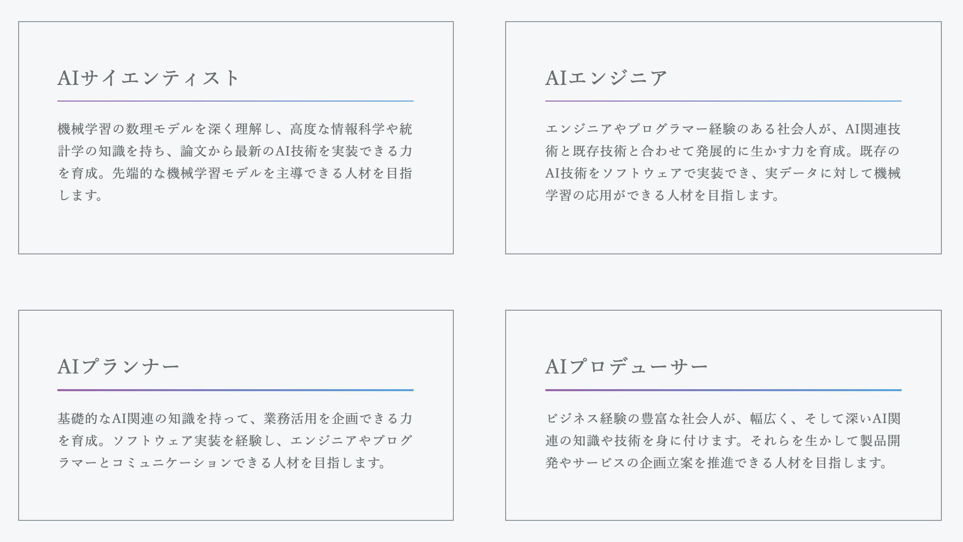 しかし、現場とエンジニアをつなぐような、AIをビジネスや社会に応用する人も育てていきます。