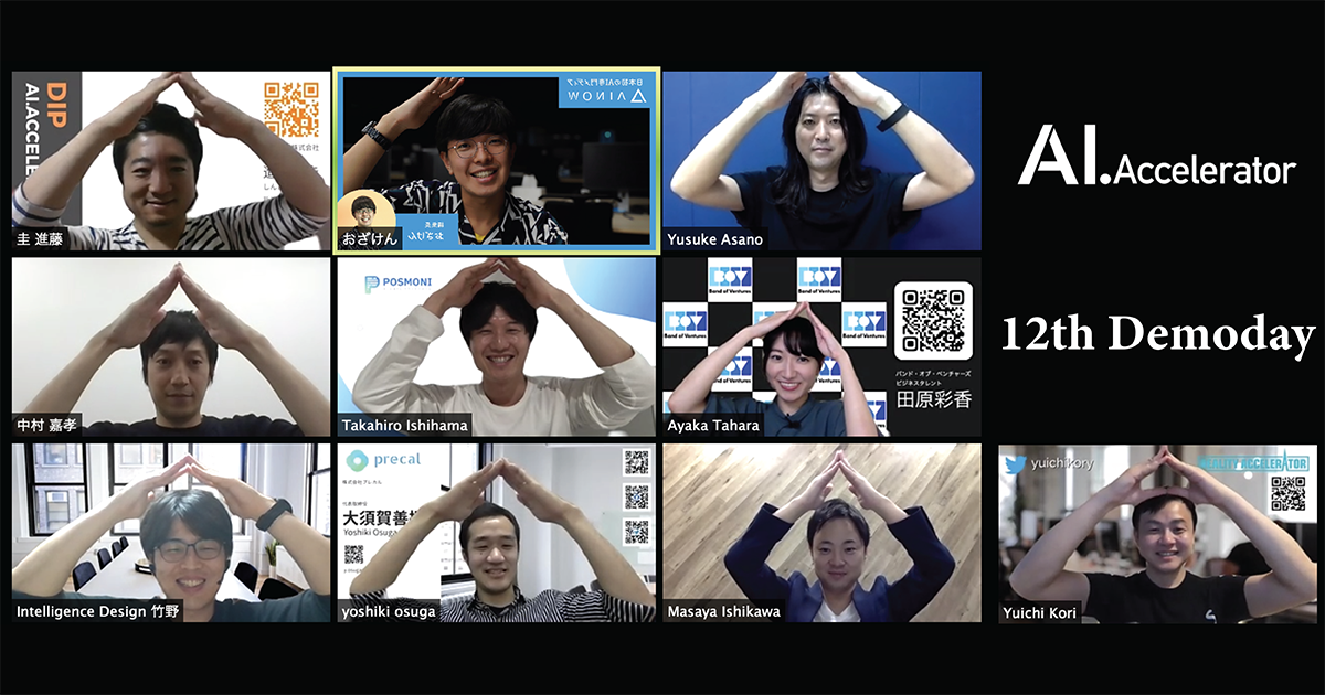 ※コロナウイルス対策の一環としてAIアクセラレーター12期デモデイは11期デモデイに引き続き、リモート開催いたしました。