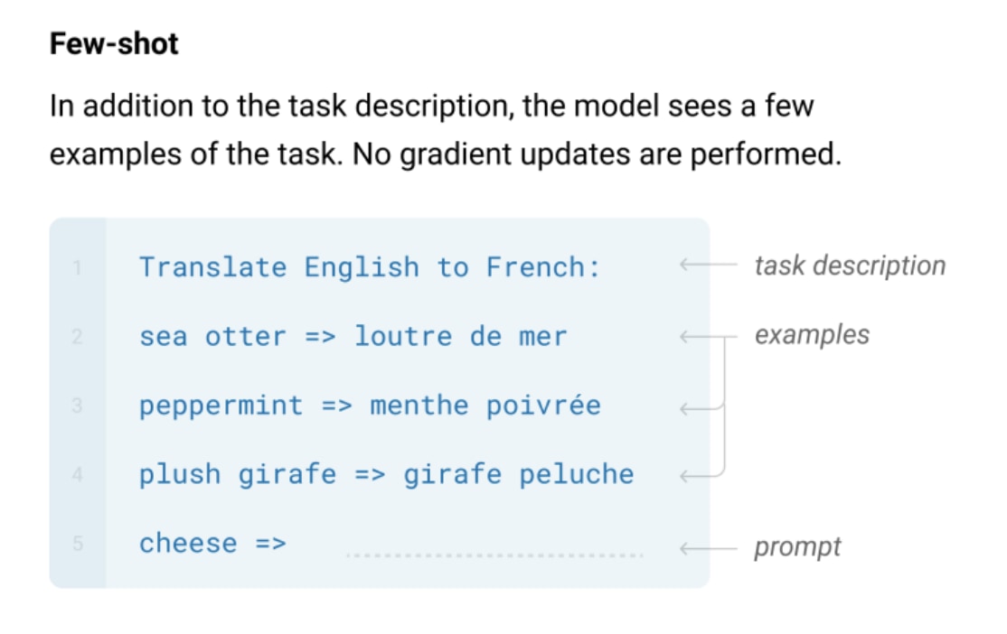 Few-shotは、Task descriptionとexampleを10~100個与える形式です。