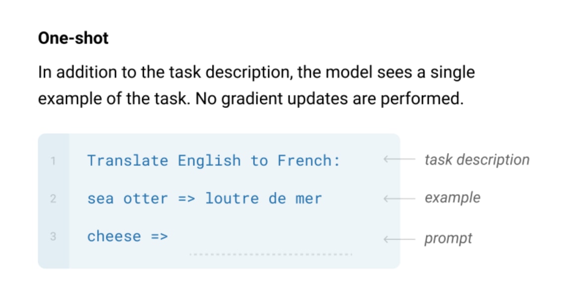 One-shotは、Task descriptionとexampleを1つだけを与える形式です。