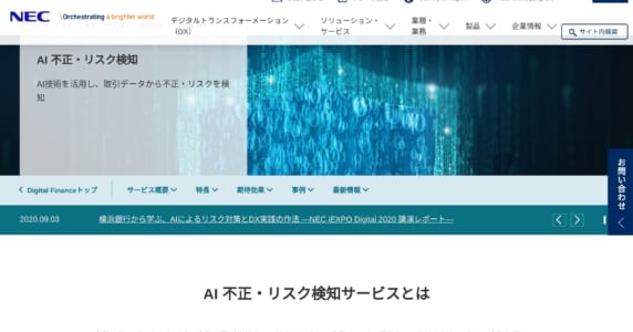 不正な⾦融取引のパターンをAI技術が学習し、不正やリスクの度合いをスコアリングするサービス「NEC AI不正検知サービス」