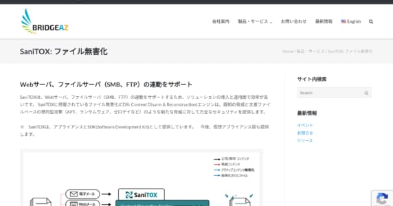 Webサーバ、ファイルサーバ(SMB、FTP)の連動をサポート・新たな脅威に対して万全なセキュリティを提供する「SaniTOX」 #ウイルス対策・不正アクセス対策#セキュリティ関連のサービス 2020.10.24